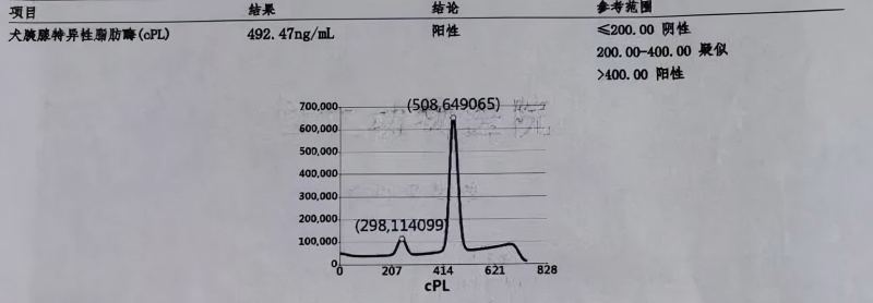 Результат диагностики: Положительный результат на собачью специфическую липазу поджелудочной железы (cPL)